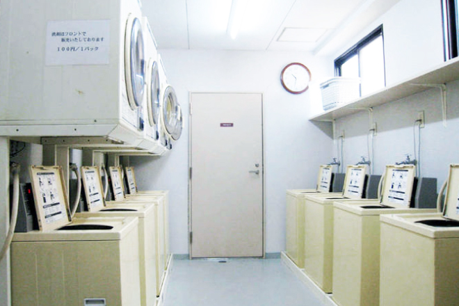 Insert 100-yen coins in to the washer and dryer. We can break at the front desk.