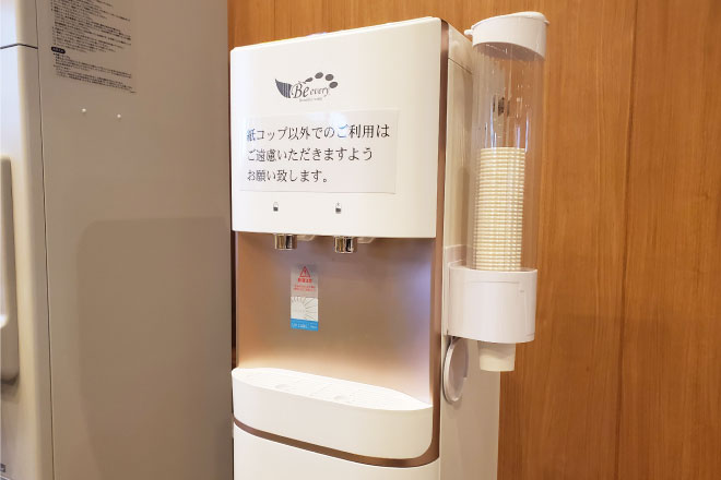 The water dispenser is in the lobby. You can get cold water or 80 degree water.